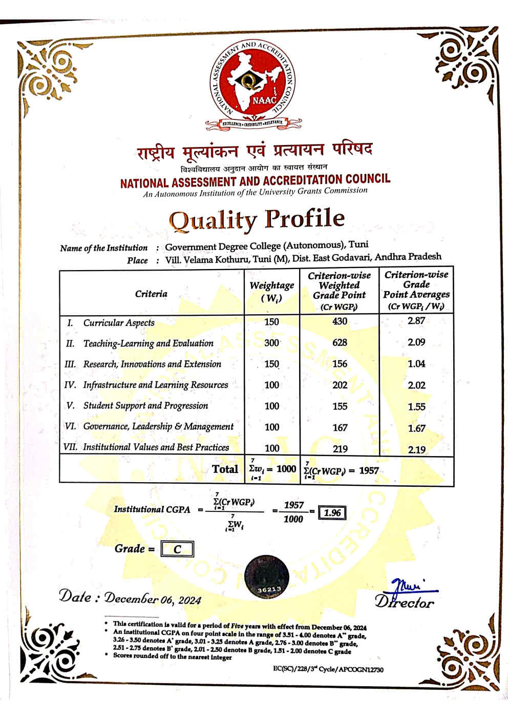 NAAC Certificate